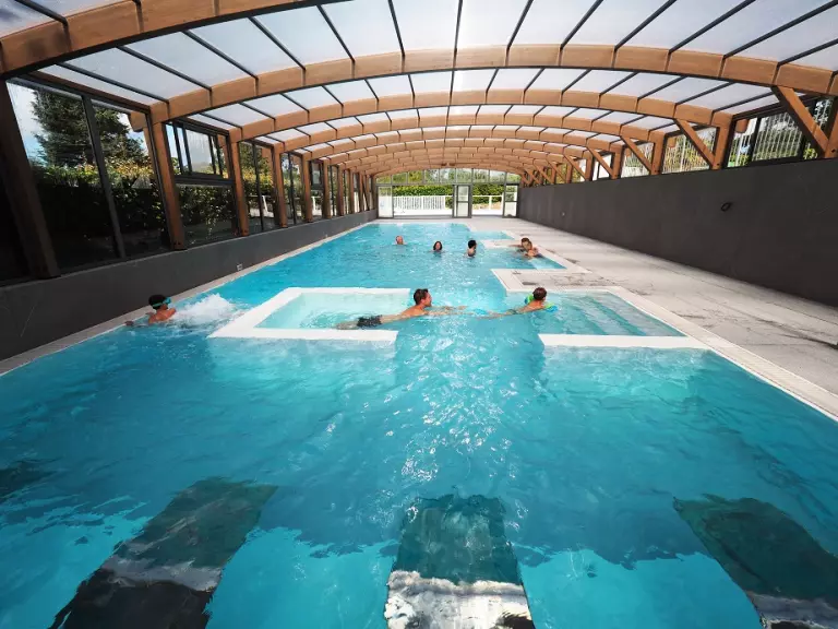 In the 270 m2 covered basin; Making its lengths will be a real pleasure! And relax to the rhythm of bubbles and sun loungers in the hydromassage wellness zone.