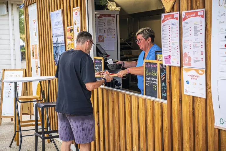 The snack bar offers take-out dishes and fresh drinks, for quick and gourmet meals, to be enjoyed in all conviviality but also a deposit of fresh bread and pastries for tasty breakfast: open 5 days/7 in the low season (closed Tuesday and Wednesday) and 7 days/7 from 04/07 to 30/08.