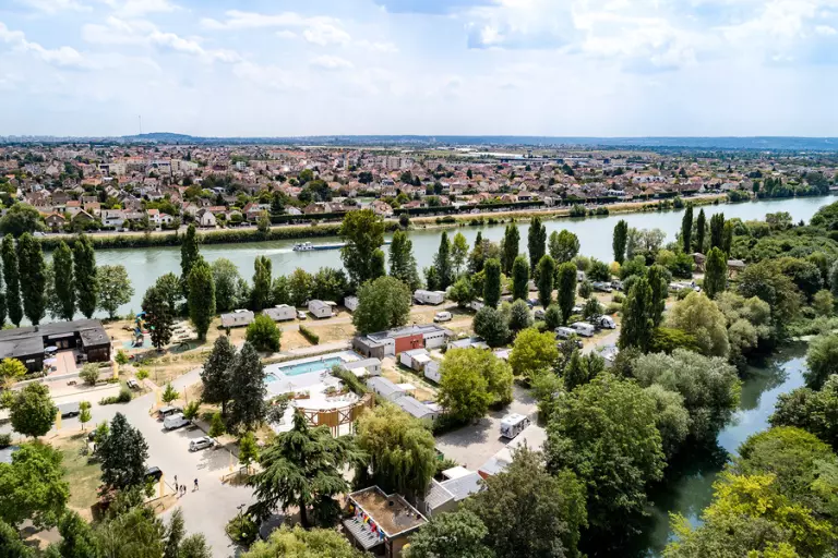 In the heart of the green setting of Maisons Laffitte, your campsite with water park is an invitation to relax on the banks of the Seine. Between two walks in the streets of Paris, take a seat in the whirlpool baths, enjoy a few lengths in the heated swimming pool and enjoy the water jets and waterfalls of the Aqua Jump area with your family!