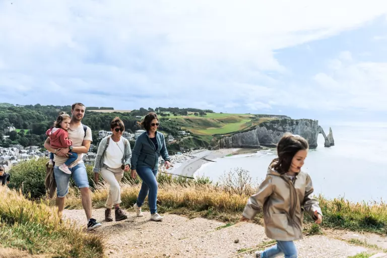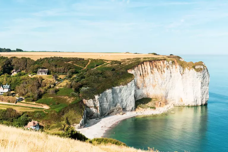 Let yourself be captivated by the beauty of Étretat and the Alabaster Coast, with its majestic cliffs, natural arches and breathtaking views. Along the coastal paths, discover unspoiled nature, charming villages and unforgettable sunsets over the sea. A unique setting to relax, escape and fully experience Normandy.
