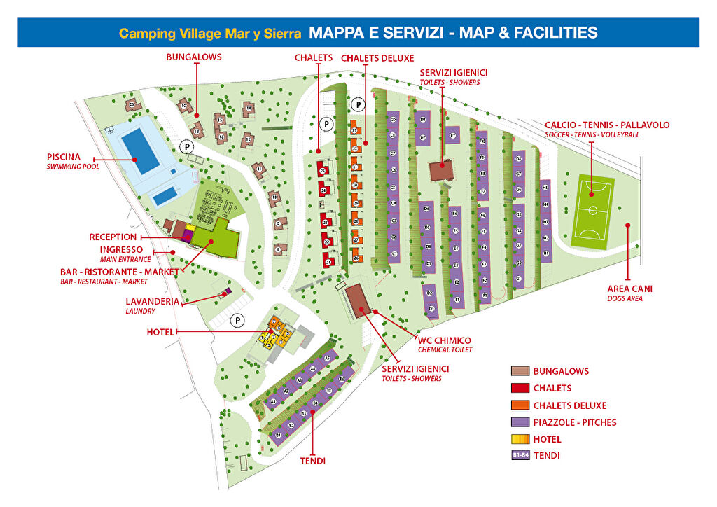 Camping Village Mar Y Sierra offers a wide range of services for its guests. The resort features comfortable brick-built Family Bungalows, Chalets, Deluxe Chalets, and glamping tents for 2 to 6 people, as well as a small hotel and shaded pitches. The facilities include two swimming pools, one of which is for children with a slide, a bar, a restaurant with pizzeria and wood-fired oven, Wi-Fi area, tennis court, several BBQ areas, laundry facilities, children's playground, and live music evenings at the restaurant. Yoga classes are also available, and during the high season, a fun and engaging entertainment program for children is provided.