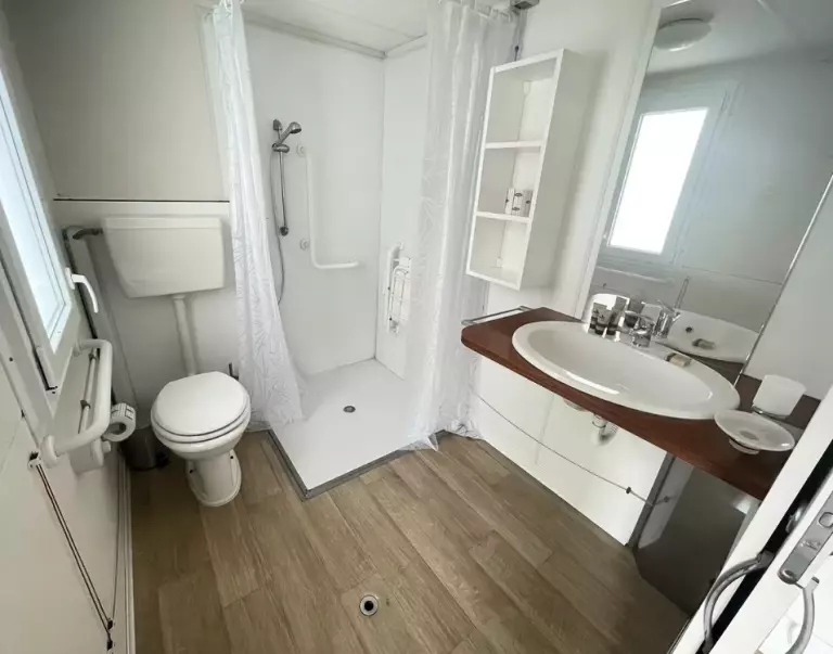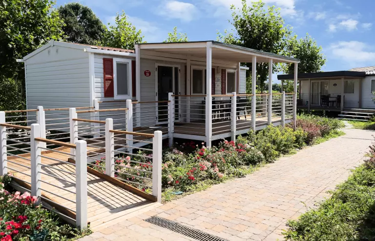 It offers its guests comfortable accommodation in mobile-homes with furnished verandas, for a relaxing stay without giving up home comforts. Immersed in a quiet and relaxing environment, it is ideal for families and couples.
