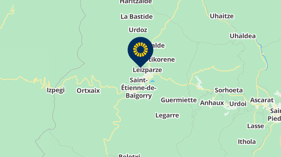 Entrer dans le village de Saint Etienne de Baïgorry puis au fronton, prendre à droite direction le VVF, passer devant la maison de retraite puis devant la gendarmerie.